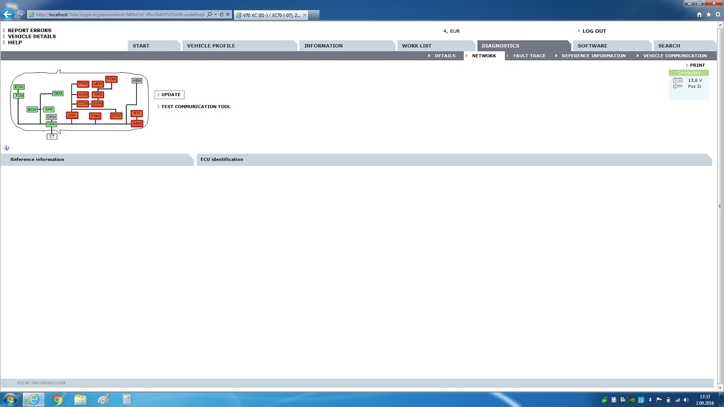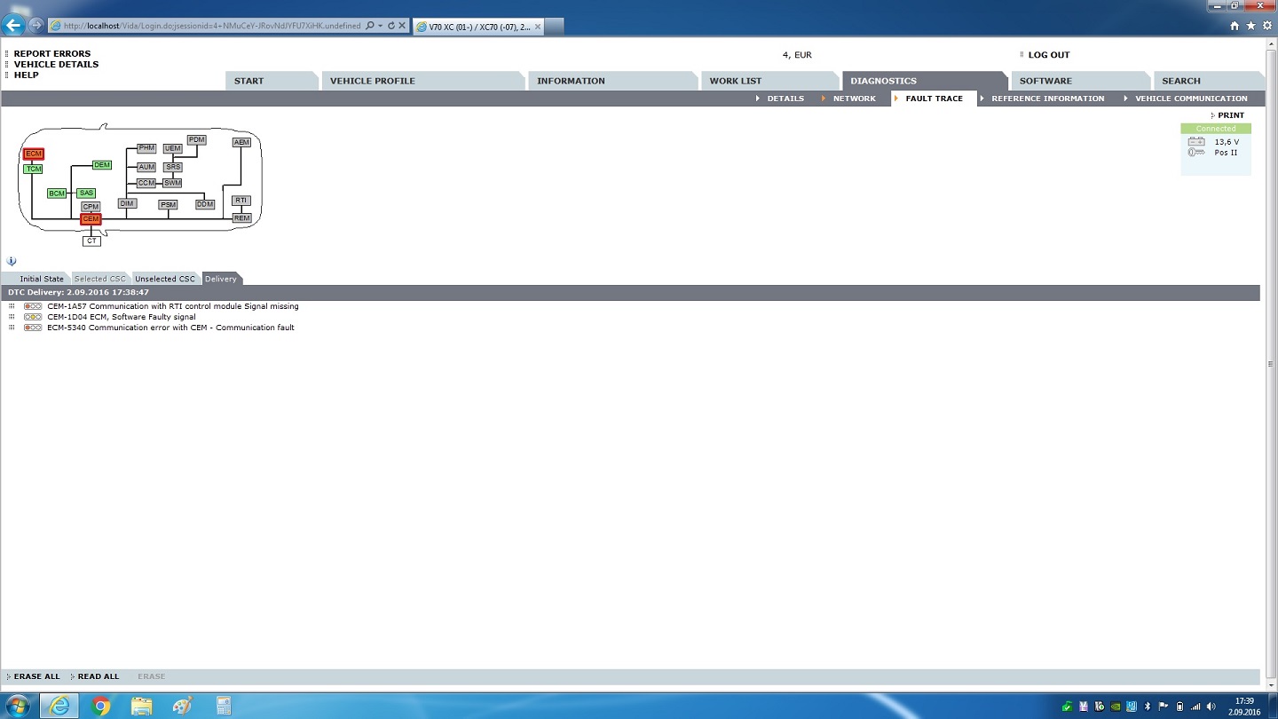 Algselt oli netist allalaetud VIDA, lasin selle maha ning kustutasin manuaalselt kõik asjaosalised ära, installisin kaasas olnud plaadilt uuesti ning DICE-ga sama lugu. Muu töötab VIDA-s nii nagu peab. Installisin ka DICE tarkvara üle paar korda. Võtsin DICE-i ka lahti ja helistasin OBD kaabli läbi, kõik ka seal korras.